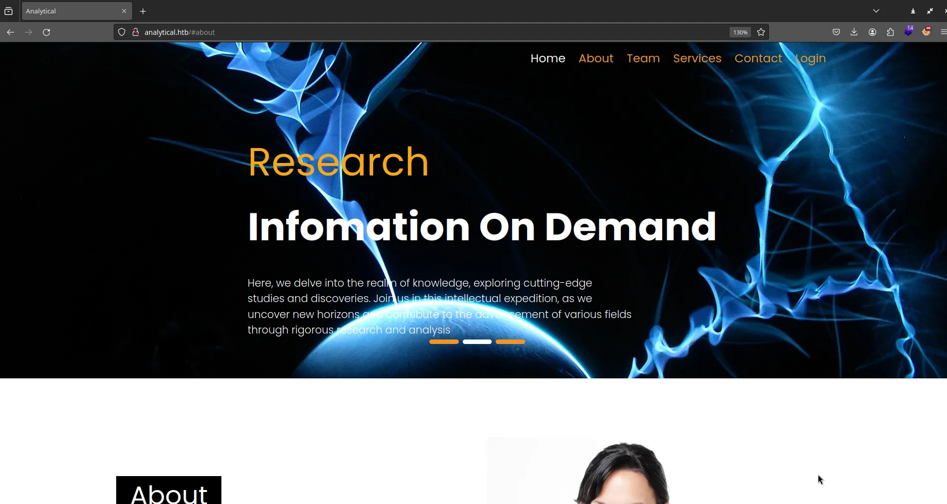Nmap done: 1 IP address (1 host up) scanned in 8.14 secondsAnd i found that this page will redirect you to http://analytical.htb/