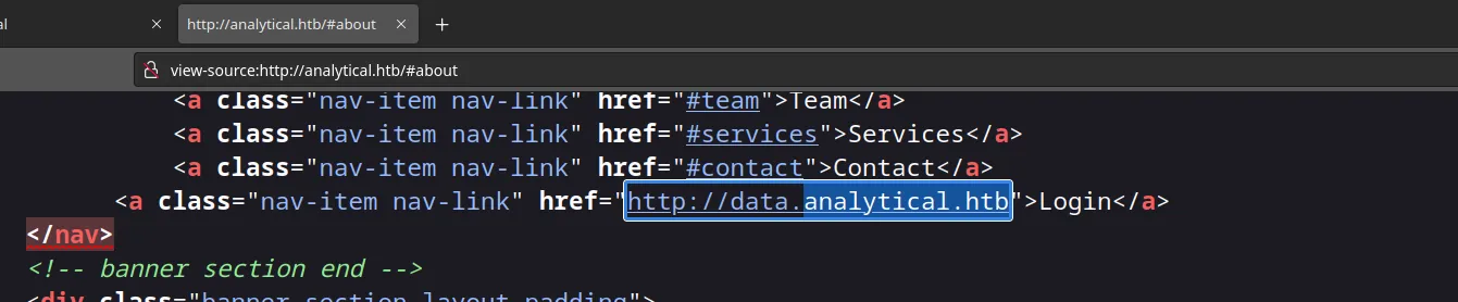 Look around in the source code and i suddenly found a different subdomain called data.analytical.htb