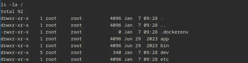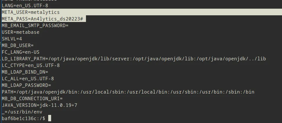 which mean we are running inside a Docker container and there is nothing inside /home/metabase… Time to escape !!!