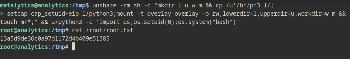 So did a bit of researching and googling, then i found that this version is vulnerable to CVE-2023-2640 and CVE-2023-32629 according to this post. So i tried it the following lines of commands…